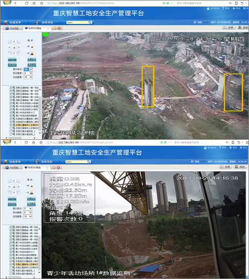平臺(tái)采用視頻遠(yuǎn)程智能分析等一系列新技術(shù),集成了渝北區(qū)、巴南區(qū)、綦江區(qū)等幾百個(gè)建筑工地的動(dòng)態(tài)在線監(jiān)控系統(tǒng),包括安全帽佩戴自動(dòng)監(jiān)測識(shí)別、升降電梯超員自動(dòng)監(jiān)測識(shí)別、卸料平臺(tái)超載自動(dòng)監(jiān)測、塔吊歪拉斜吊自動(dòng)監(jiān)測、揚(yáng)塵超標(biāo)自動(dòng)監(jiān)測、外排架傾斜自動(dòng)監(jiān)測等相關(guān)功能,實(shí)現(xiàn)了對(duì)建設(shè)工地的現(xiàn)場人員作業(yè)、設(shè)備運(yùn)行、揚(yáng)塵、物料等情況的全方位、可視化實(shí)時(shí)監(jiān)管。